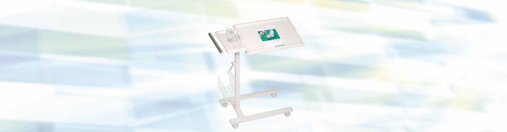 Suitable for any type of Comfort Therapy chair and can usefully complement the latter during treatment. The height of the table can be adjusted as required using the lever on its support stand. The trays can be easily cleaned and lifted out. The table can be positioned at an appropriate angle.