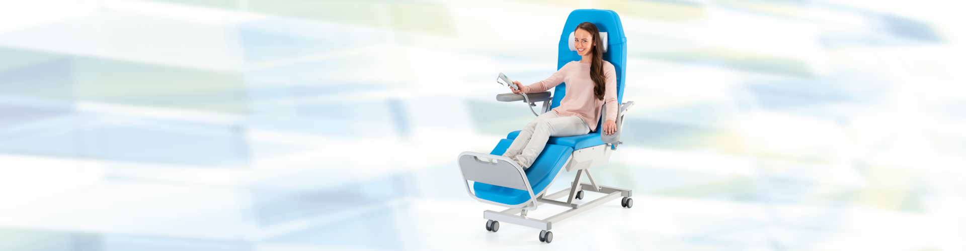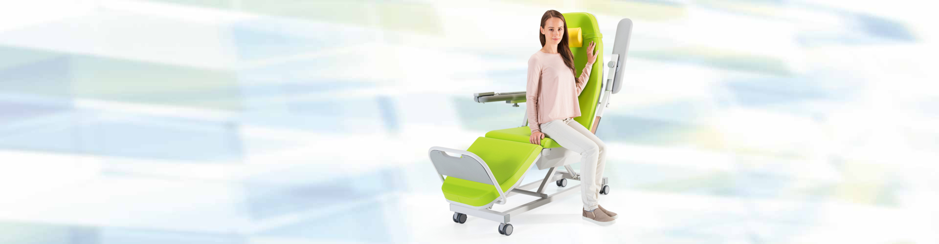 Eine Liege, die Patienten gut tut: gestützt auf das komfortable, weiche Polster bringt die SALSA A3 Patienten stufenlos in jede gewünschte Position. Angetrieben von drei Motoren verfährt die Liege von der Sitz- über die Komfort- bis in die Bettposition. Patientenkomfort, mit dem sich auch mehrstündige Behandlungen entspannt bewältigen lassen. Und im Notfall bringt die Liege die Patienten per Tastendruck nicht nur bis in die Schocklage, sondern bei Bedarf weiter bis in die Trendelenburgposition. Die weichen, geformten Armstützen, die schwenkbar, hoch- und abklappbar sind, erlauben optimalen Zugang und tragen ihr übriges zum Wohlbefinden der Patienten bei.